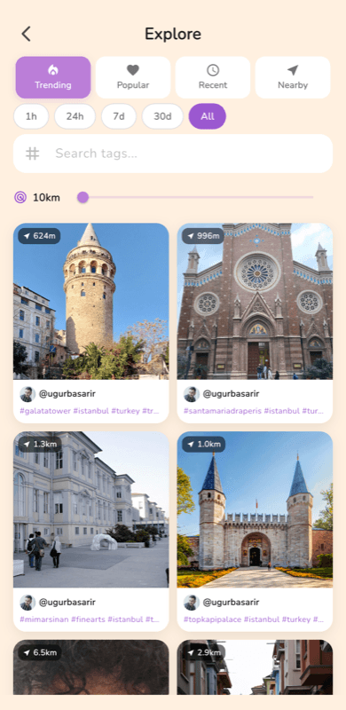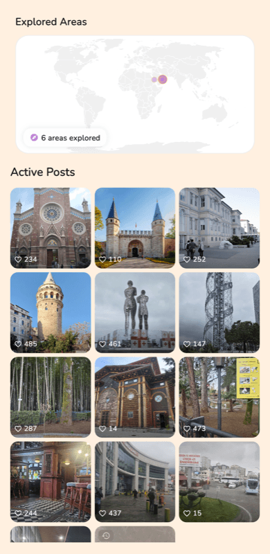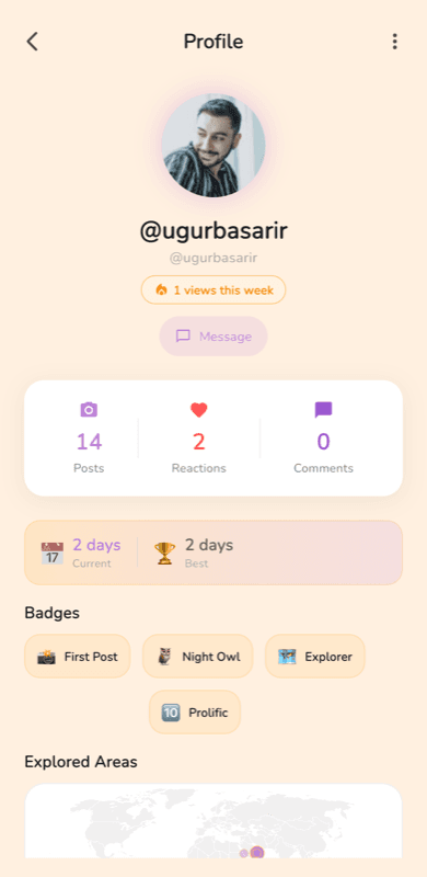 Earn badges for exploring, posting streaks, and going viral. Climb the leaderboard and become a top explorer.